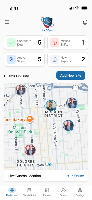 Monitor guard locations live during active shifts with accurate GPS tracking, location history, and site-based geofencing for full operational visibility.